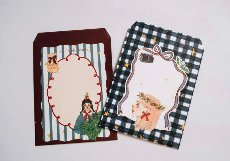 - Sobres con estampados navideños a todo color.