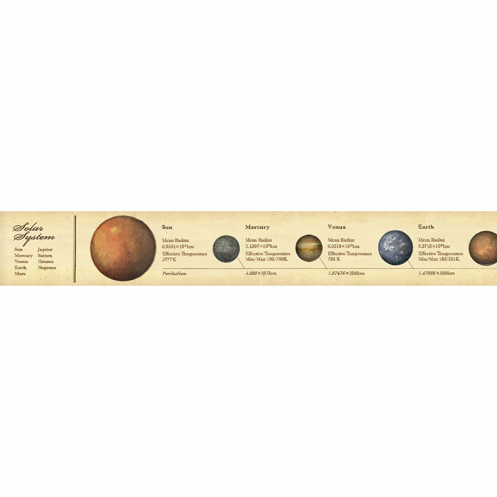 - Cinta adhesiva decorativa con estampados de temática de enciclopedia del sistema solar.