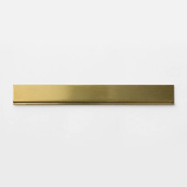 - con un diseño minimalista y producido a partir de una plancha maciza de latón prensado.